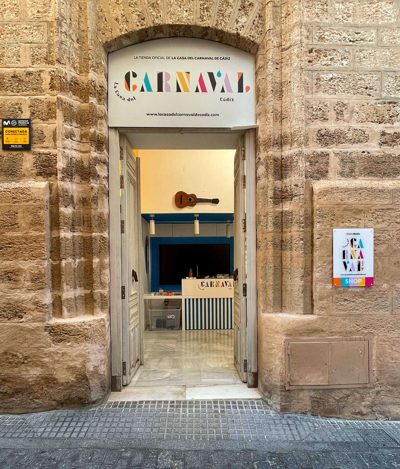 Tienda Oficial del Museo del Carnaval de Cádiz, espacio donde se da a conocer el origen, evolución y transición de esta fiesta, la de mayor importancia de la ciudad. El edificio está compuesto por cuatro plantas. Ocho salas están dedicadas a exposiciones permanentes, ubicadas en la primera planta del edificio. En la zona de entreplanta, se encuentran las exposiciones temporales, con cuatro salas y en planta baja, la tienda del Carnaval.